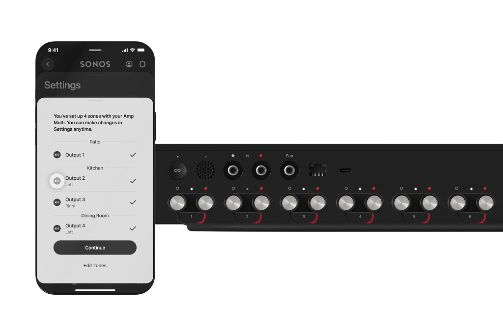 - Configuraresimplificată: Fiecare unitate emite un semnal sonor unic, declanșat direct din aplicația Sonos, eliminând necesitatea introducerii manuale a codului PIN. Aplicația Sonos le permite integratorilor să gestioneze cu ușurință zonele, sursele și ieșirile dintr-o singură interfață, oferind în același timp o experiență intuitivă și prietenoasă pentru utilizatorii finali, care se așteaptă ca tehnologia să funcționeze pur și simplu.